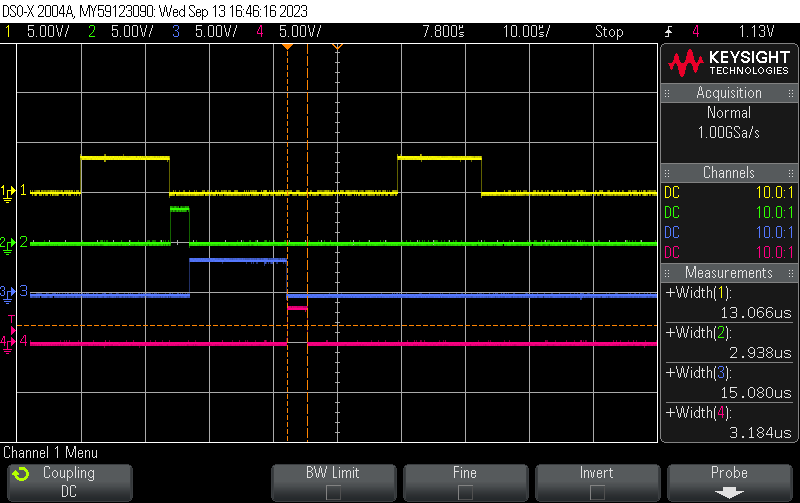The tasks states execution was recorded with an oscilloscope and the result is given below: